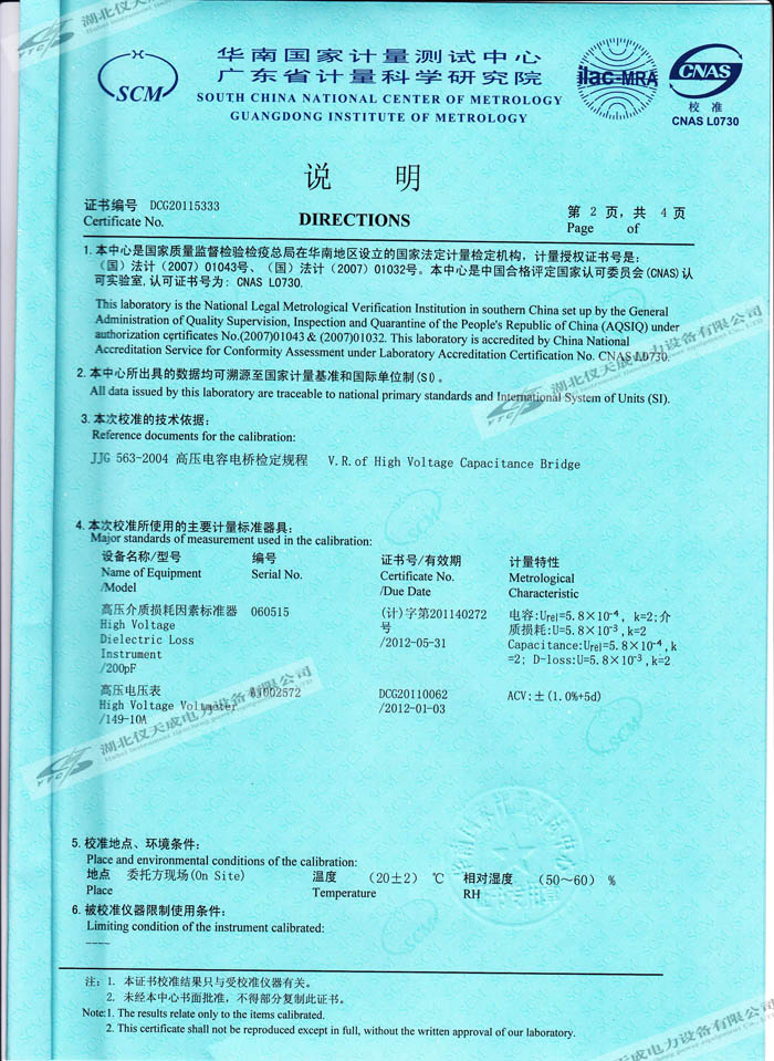 YTC309抗干擾介質損耗測試儀的資質證書