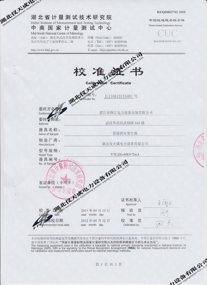 首頁 > 預防性檢測設備 > 鑒定證書 >